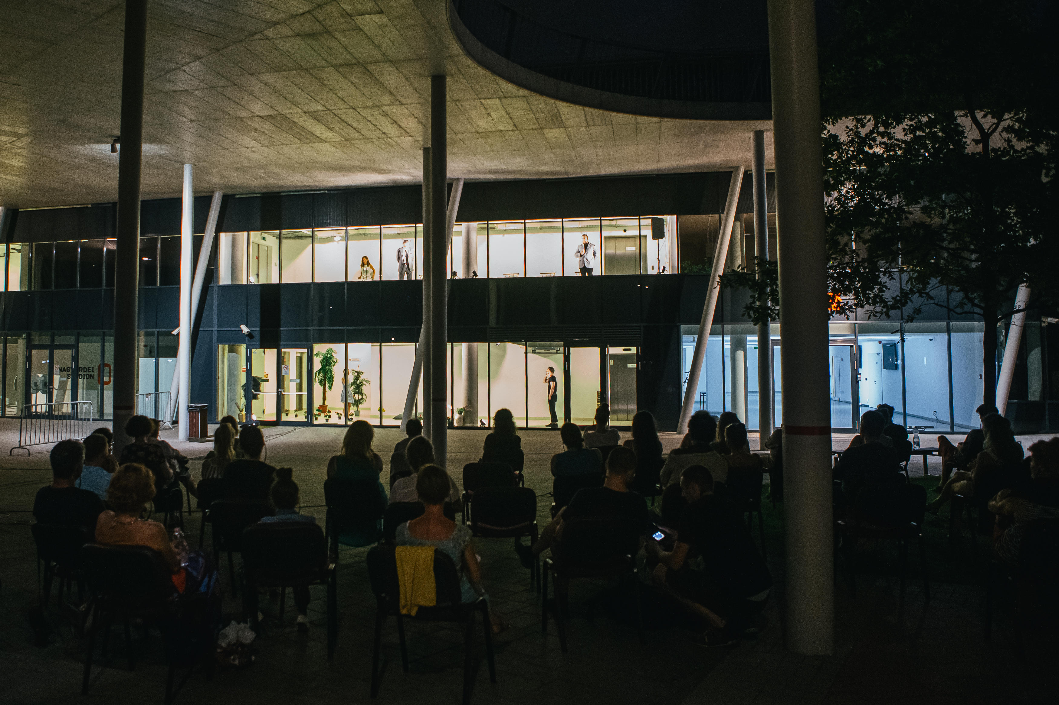 A Csokonai Színház 2020 nyarán vitrinszínházi produkcióval válaszolt arra a kettős kihívásra, melyet egyrészt a koronavírus-járvány, másrészt a színház történelmi épületének rekonstrukciója támasztott a társulattal szemben. Gemza Péter igazgató a Londonban dolgozó fiatal rendezőt, Éry Franciskát kérte fel arra, hogy a társulattal közösen a távolságtartás szabályait betartó, mégis a közösségi színházi élmény jelenidejűségét kínáló előadást alkosson. Éry Franciska szokatlan helyszínen, a Nagyerdei Stadionban rendezte meg a Hamlet című előadást. A színészek a stadion üvegfalain belül, mikroporttal játszottak, míg a nézők a stadionon kívül, egymástól biztonságos távolságban ülve, fejhallgatón keresztül követték a történéseket, illetve a Stadionban és környékén további helyszínekre vándoroltak a színészekkel együtt, az előadás dramaturgiáját követve. A Rózsa László címszereplésével bemutatott előadás új funkciókkal ruházta fel az elsősorban sporteseményeknek helyet adó Nagyerdei Stadiont. Emellett érvényes és innovatív választ adott a koronavírus-járvány ?új valóságának? színházi útkeresésére.