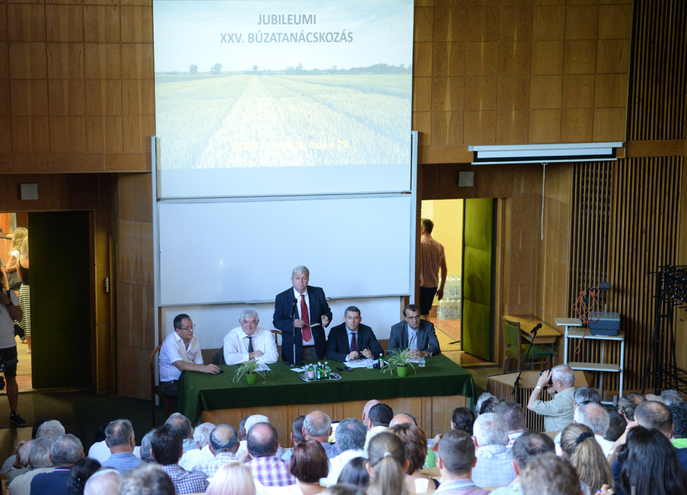 - Olyan tudatosan, tematikusan felépített szakmai konferenciákról és szántóföldi bemutatókról van szó, amelyben a búzatermesztés legújabb kutatási eredményeit adjuk át az irányításban, az inputszolgáltatásban, valamint a gyakorlatban dolgozó szakemberek részére. Az elmúlt 25 évben óriási fejlődésen ment át a hazai búzatermesztés, amelynek megújulásához a Növénytermesztési Tanszék tudományos eredményei is jelentős mértékben hozzájárultak ? hangsúlyozta a tanácskozás megnyitóján Pepó Péter intézetigazgató.