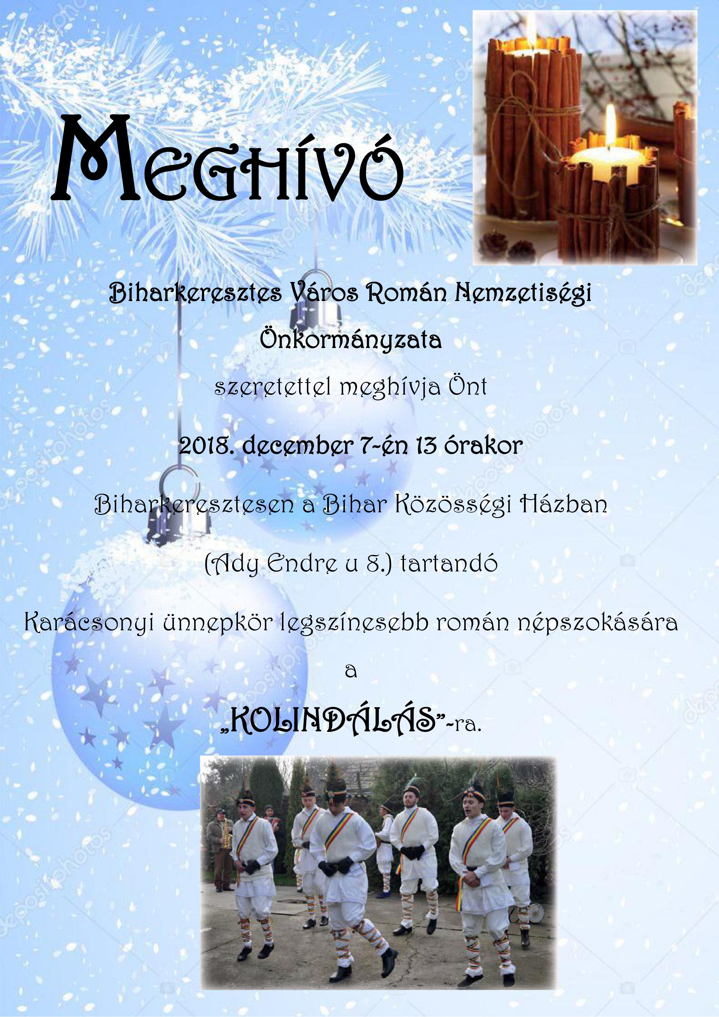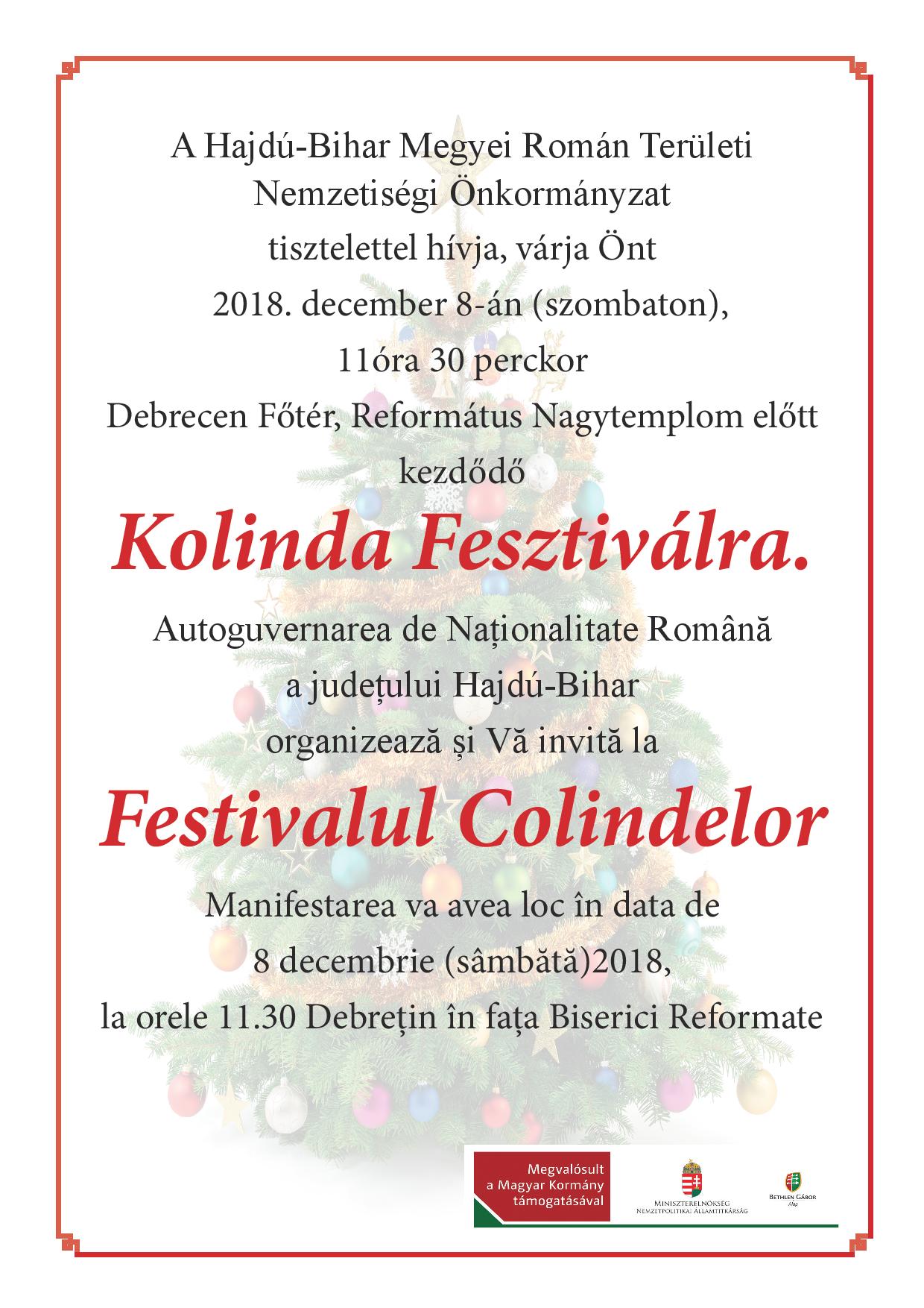 Kolinda Fesztivált szervez a Hajdú-Bihar Megyei Román Területi Nemzetiségi Önkormányzat december 8-án, szombaton. Az esemény 11 óra 30 perckor kezdődik Debrecen főterén, a Református Nagytemplom előtt.