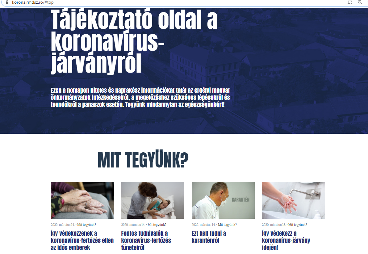A tájékoztató honlapon hiteles és naprakész információkat találhatunk a kormányzati és az erdélyi magyar önkormányzati intézkedésekről, a megelőzéshez szükséges lépésekről és teendőkről a panaszok esetén.