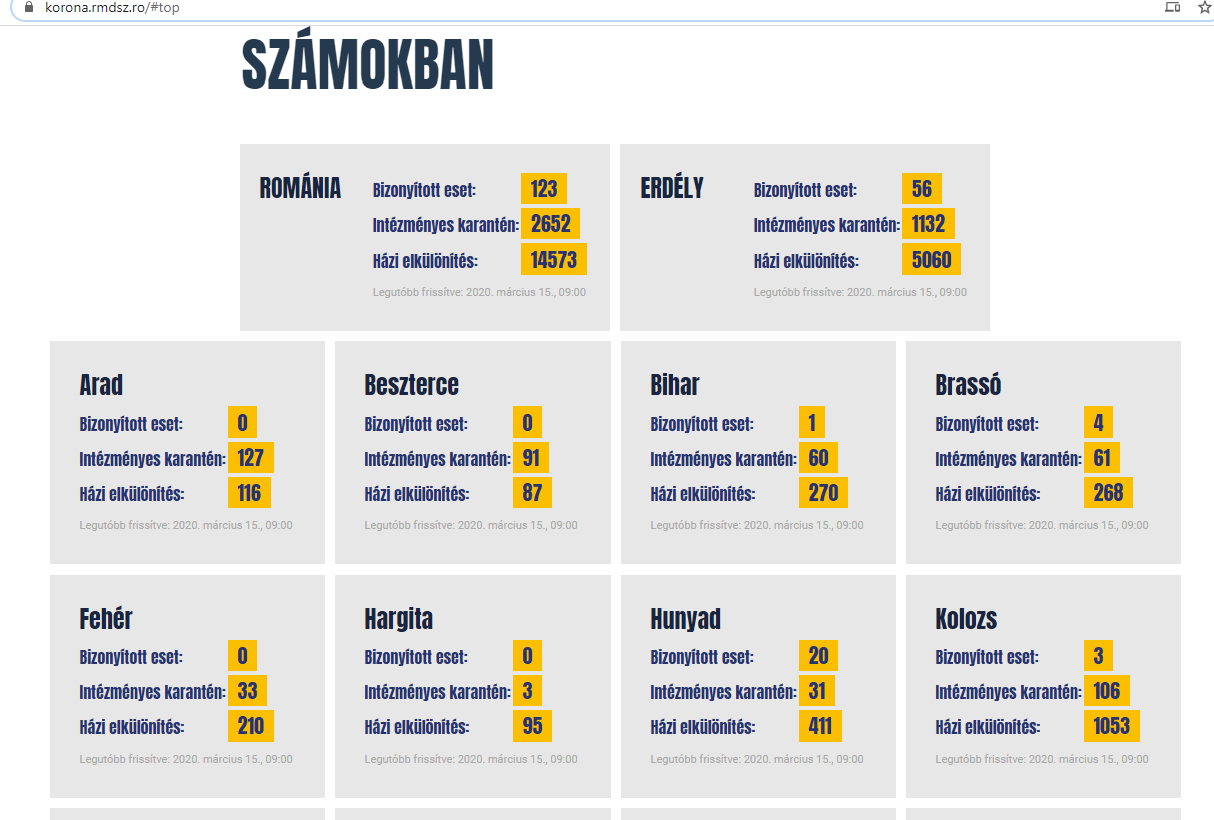 A honlap nem csak arról tájékoztat, hogyan védekezhetünk a koronavírus-fertőzés ellen, milyen tünetekkel jár a fertőzés, mi a karantén, kik és milyen esetekben kerülnek házi vagy intézményes karanténba, de az országra, erdélyre és megyékre lebontott naprakész információkat kaphatunk arról, is, hol hány igazolt fertőzött van, és mennyien vannak karanténban.