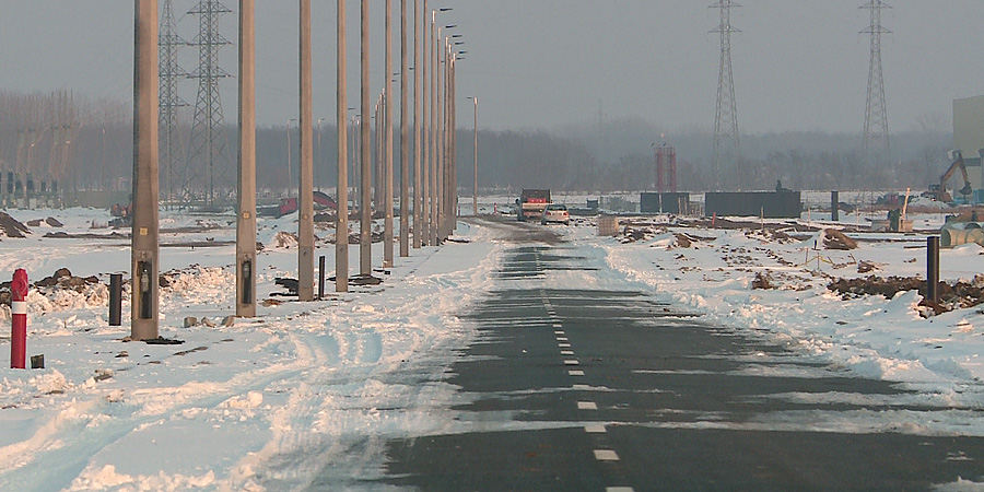 Már leaszfaltozták az utat a Déli Ipari Parkban. Az útszakaszok behálózzák az érintett területet, összekötve a gyárépületeket egymással, illetve a 47-es számú főúttal. Az itt található trafóállomás is hamarosan feszültség alá kerül ? írja uft.hu.