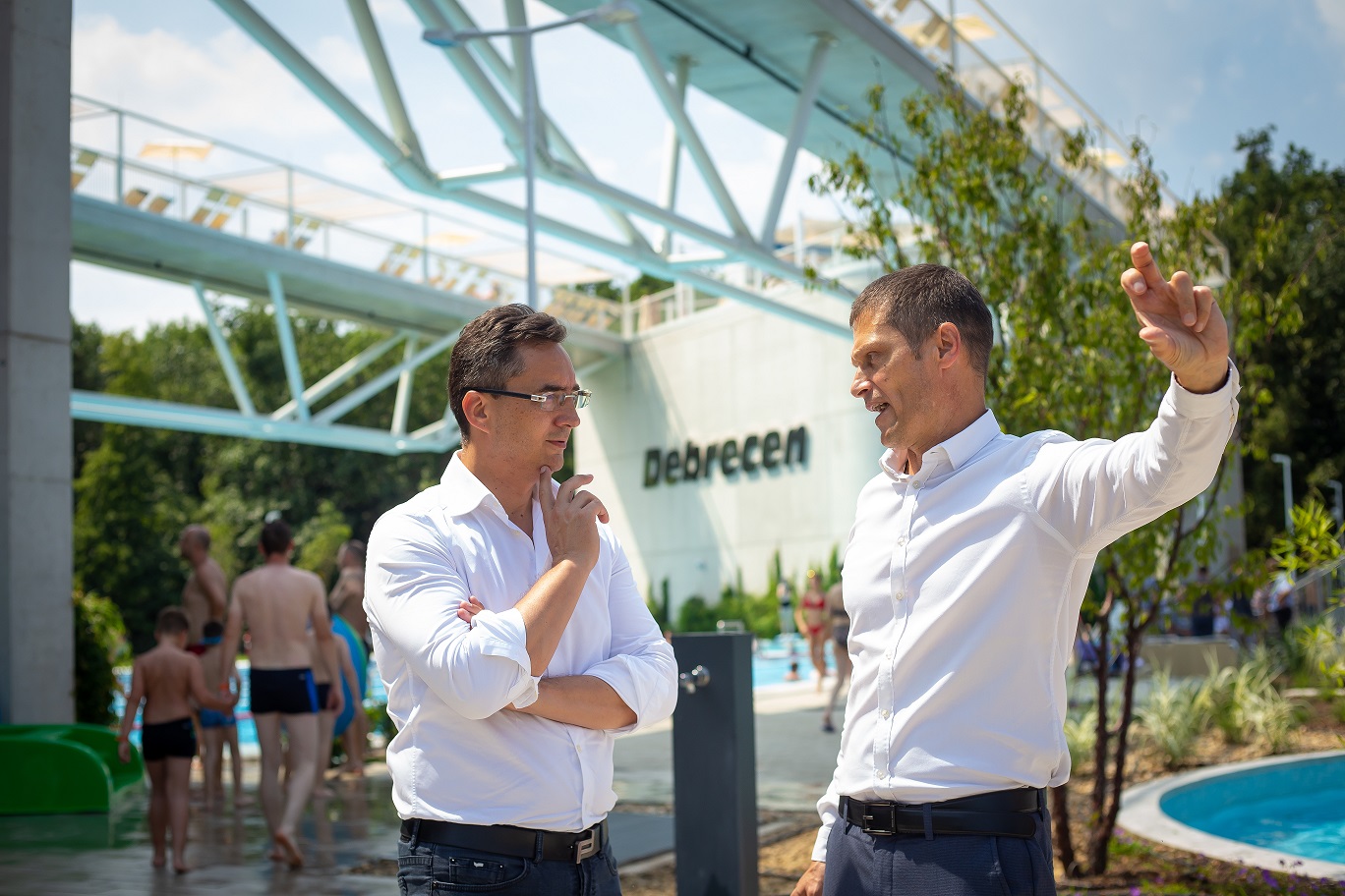 Az új Aquaticum Debrecen Strand 2020. június 20-án nyitotta meg kapuit a látogatók előtt. Jó érzéssel lehet megállapítani, hogy elképesztően népszerű, még a vártnál is sokkal nagyobb érdeklődést váltott ki, s nem csak Debrecenben, hanem az országhatárokon belül és azon kívül is ? mondta Papp László polgármester azon a sajtótájékoztatón, amelyet Fazekas Lajossal, a Debreceni Gyógyfürdő Kft. ügyvezetőjével együtt tartott a strandon 2020. július 30-án.
