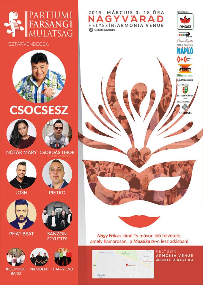 Jegyek korlátozott számban még kaphatók a Partiumi Farsangi Mulatságra, melyet március 3-án rendeznek meg Nagyváradon. A rendezvény különlegessége, hogy a Muzsika TV a Nagy Fröccs című műsora számára felvételt készít a meghívott sztárvendégek fellépéséről, a rögzített képsorokat pedig a televízióban lehet majd viszontlátni.