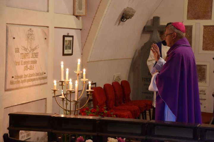 A főpásztor rövid, megemlékező beszédében kiemelte, nem csak ilyen alkamakkor, hanem máskor is lehet imádkozni elhunyt elődeinkért, főpásztorainkért, lelkipásztorainkért. ?Ezekben az időkben és ezekben a napokban eszembe jutott, hogy azok, akik előttünk éltek és távoztak az Úrhoz, sok mindent átéltek, megéltek és elviseltek életükben. Közöttük József püspök is, olyan időket is átélt, amelyekre sokan közülünk már nem emlékezünk vagy nem is éltünk meg. Akkor is voltak nehéz idők, tiltások, szigorítások, más jellegűek, igaz, de nekik is át kellett élniük azt, amit a mai evangéliumban is az Úr Jézus kilátásba helyezett, hogy a keresztény tanúságtétel nem egy könnyű feladat, a helytállás pedig áldozatokat követel.?