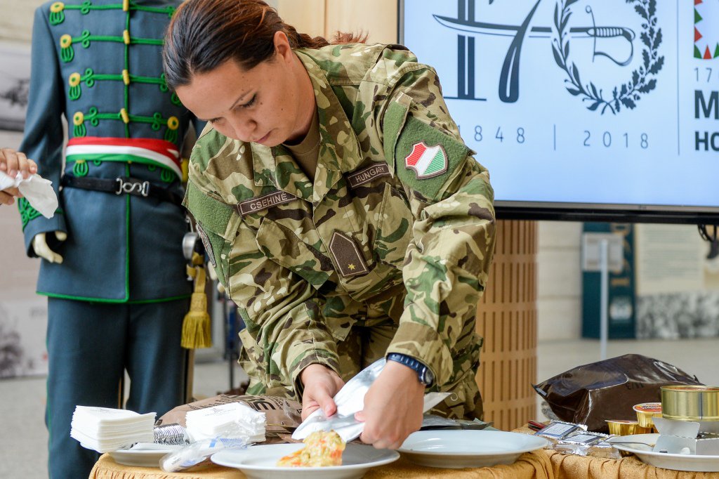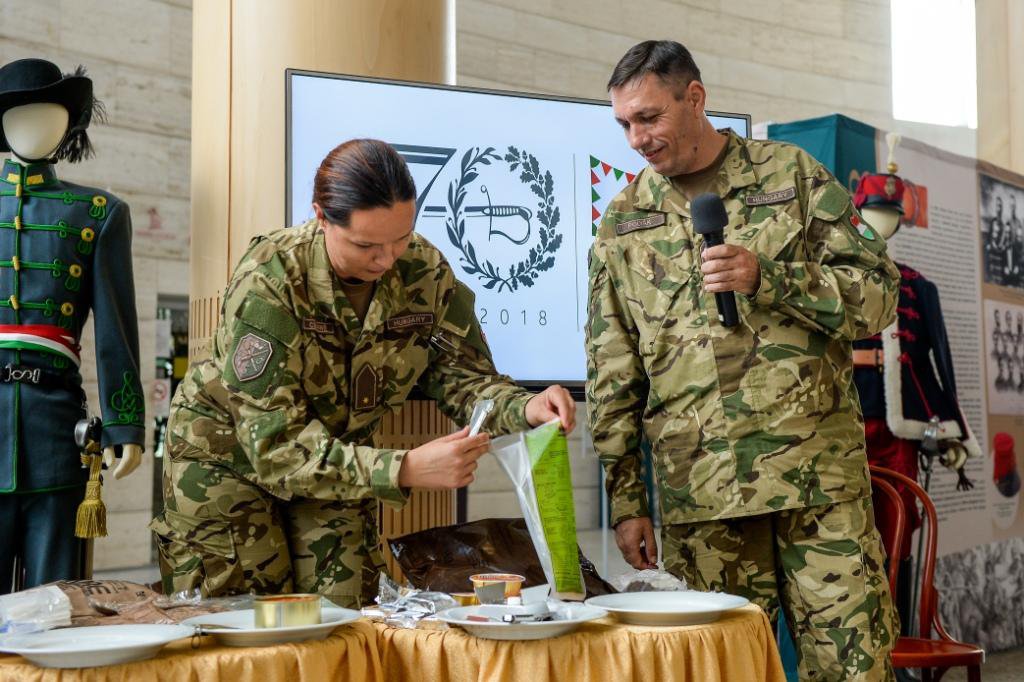 A Magyar Honvédség MRE (meal ready to eat) csomagjaiban megtalálható élelmiszerekből, és így a katonák mindennapi életéből is ízelítőt kaphattunk a napokban zajló XX. Nemzetközi Katonazenekari Fesztivál és a 170 éves a Magyar Honvédség című tárlat megnyitóját beharangozó sajtótájékoztatón, Debrecenben.