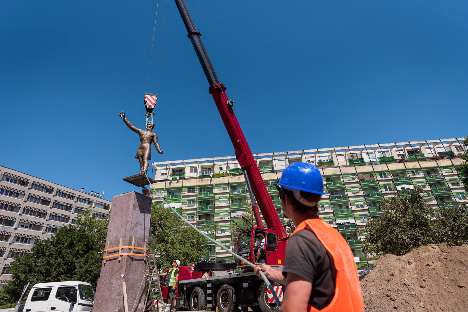 A bronzöntvény alkotást Győrfi Lajos, Magyar Örökség díjas szobrászművész felügyeletével helyezték, illetve rögzítették a talapzatra, miután püspökladányi műhelyében restaurálta azt.