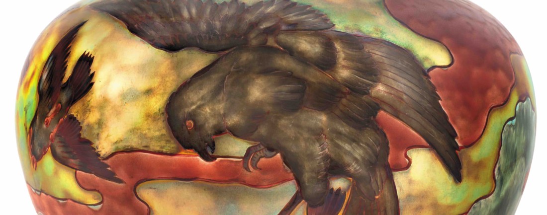 Az aukción szereplő remekművek jelentős része a Zsolnay-gyár által a 19. század végétől alkalmazott, akkoriban világszenzációnak számító eozines díszítési technológiájával készült. Ezek közül is kiemelkedett egy 1902-es, zsákmányra lecsapó sas képével díszített virágtartó edény, ami 3 millió forintos kikiáltási árról indulva végül 8 millió forintért talált gazdára.