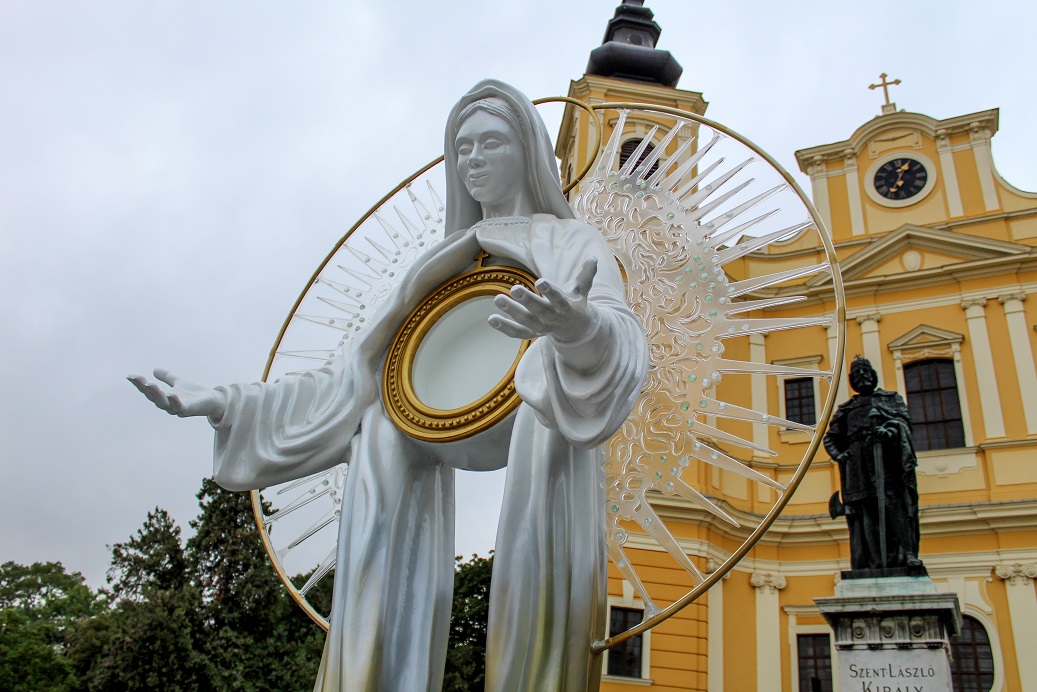 "Az Oltáriszentséget ábrázoló virágkocsi a Debreceni Virágkarneválra, és kimondottan az Nemzetközi Eucharisztikus Kongresszusra készült kompozíció, amely augusztus 15-én, Esztergomból, Nagyboldogasszony napján, Erdő Péter bíboros áldásával indult el zarándokútjára. Ezt követően a Debreceni Virágkarneválon, majd egy héten át Budapesten, a Mátyás Templom előtt, a Nemzetközi Eucharisztikus Kongresszus alkalmából volt látható. Most szeretnénk itt, Nagyváradon is megmutatni" ? nyilatkozta hírportálunknak Bódor Edit, aki Debrecen városa képviseletében, mint az egyházi és határon túli magyar közösségi kapcsolatokért felelős koordinátor érkezett Nagyváradra.