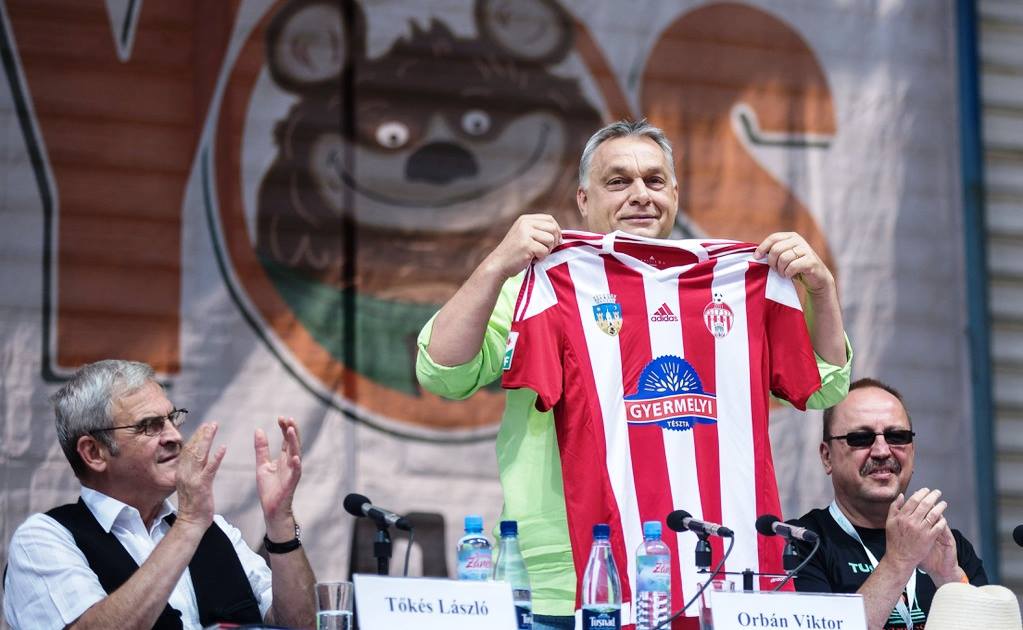 Orbán Viktor a sepsiszentgyörgyi focicsapat mezével.[/caption]