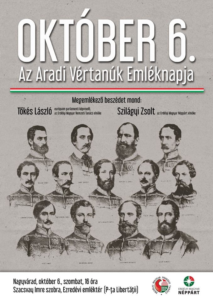 A korábbi évek hagyományaihoz híven október 6-án az RMDSZ Bihar megyei szervezete a történelmi magyar egyházakkal és a nagyváradi magyar civil szervezetekkel közösen emlékezik meg a tizenhárom aradi vértanúról.