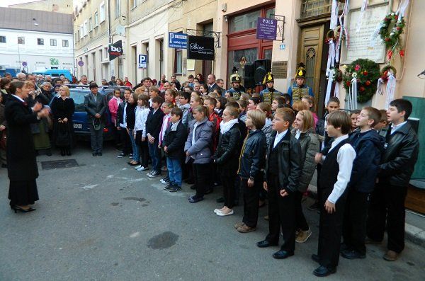 Nagysándor József emléktáblájánál Nagyváradon. Fotó: erdon.ro[/caption]