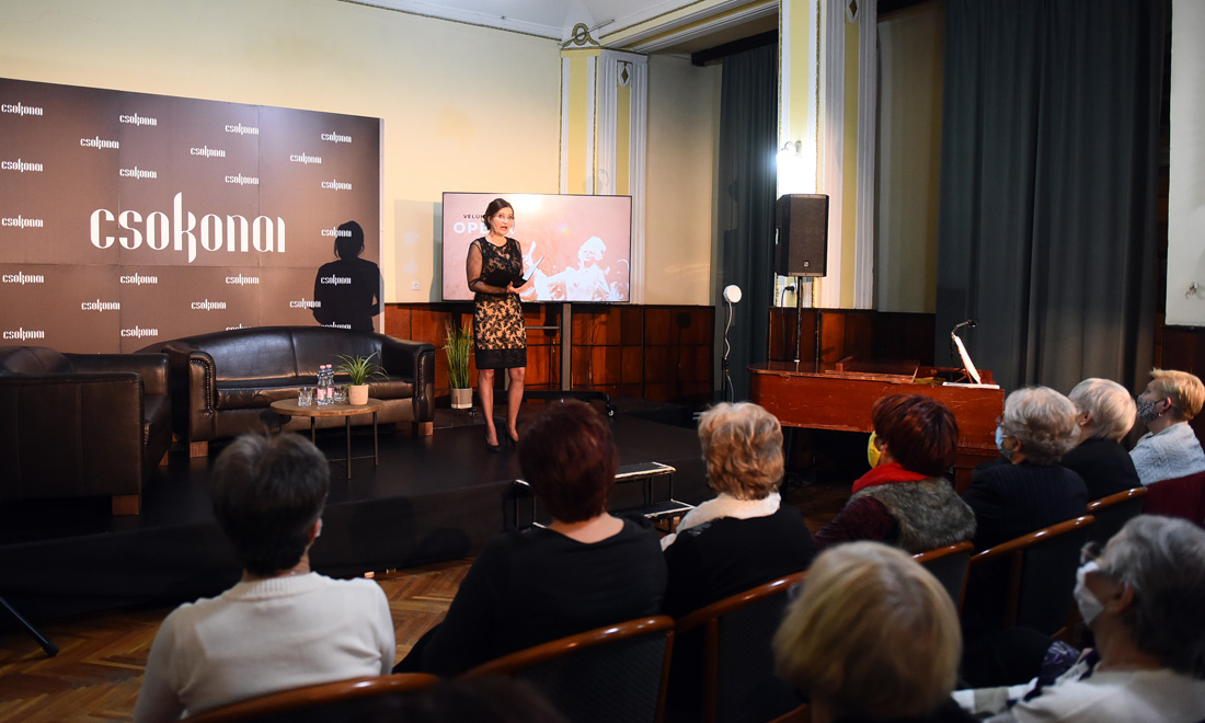 A fiatal szoprán énekesnőnek szintén a Debreceni Egyetem Zeneművészeti Kara volt az alma matere. A Csokonai Színház havonta jelentkező, novemberben indult zenés programja a jövőre 70 éves debreceni operajátszásnak állít emléket: a még köztünk élő meghatározó operaénekesekkel, a műfaj ikonikus alakjaival és az új generáció tagjaival a debreceni operajátszás helyét, rangját szeretné megmutatni a magyar operaéletben. Az estek háziasszonya, Ujvárosi Andrea ezúttal Komlóssy Erzsébet operaénekes pályáját is felidézi, a visszaemlékezéseket ezúttal is koncertélményekkel, élő zenével és archív felvételekkel színesítve.