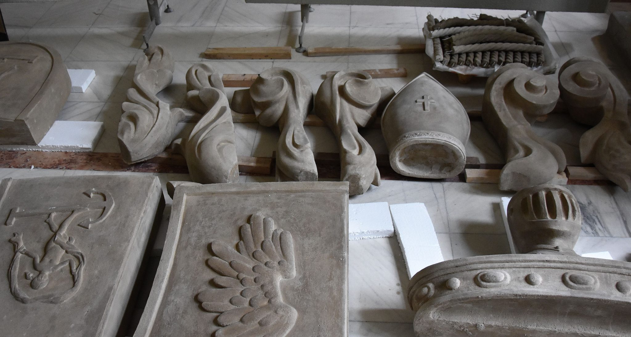 A kilenc négyzetméteres domborművet a következő napokban fogják darabjaiból összeilleszteni és méltó helyére emelni a palota főbejárata fölötti homlokzatra, ezzel mintegy végső bélyeget helyezve a felújítási folyamatra, valamint az értékeket alkotó és ápoló egyházmegye egykori vezetője iránti tisztelet kifejezésének jeléül. A homlokzatot ismét felállványozzák a főkapu előtti részen, megerősítik a falfelületet, hogy a súlyos kőelemek rögzítésére alkalmas legyen. Egy hosszabb és igényesebb munkafolyamatról van szó, amely több napot vesz majd igénybe, és amelynek végén az idelátogatók megcsodálhatják a püspöki palotának immár teljesen kiegészített és kidíszített homlokzatát.