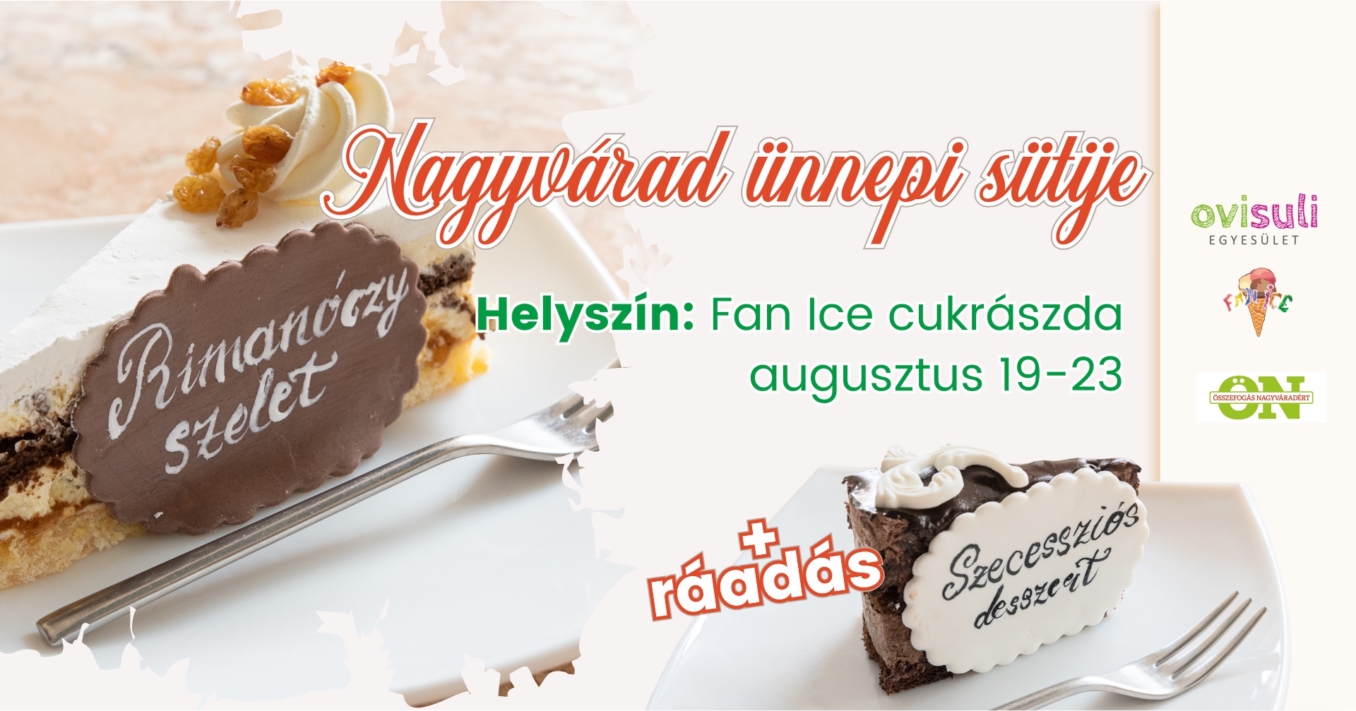 Az augusztus 20-i nemzeti ünnep alkalmából az Ovisuli Egyesület, az Összefogás Nagyváradért Egyesület és a Fan Ice cukrászda ismét elkészíti Nagyvárad ünnepi sütijeit. Az alkalmi desszertek ezúttal a város épített öröksége és a mai Nagyvárad arculatát meghatározó építész, ifjabb Rimanóczy Kálmán előtt tisztelegnek.