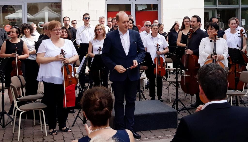 A rendezvényt Suppé: Könnyűlovasság c. művének Nyitánya indította, majd Papp László polgármester köszöntötte a jelenlévő művészeket és a téren összegyűlt közönséget.