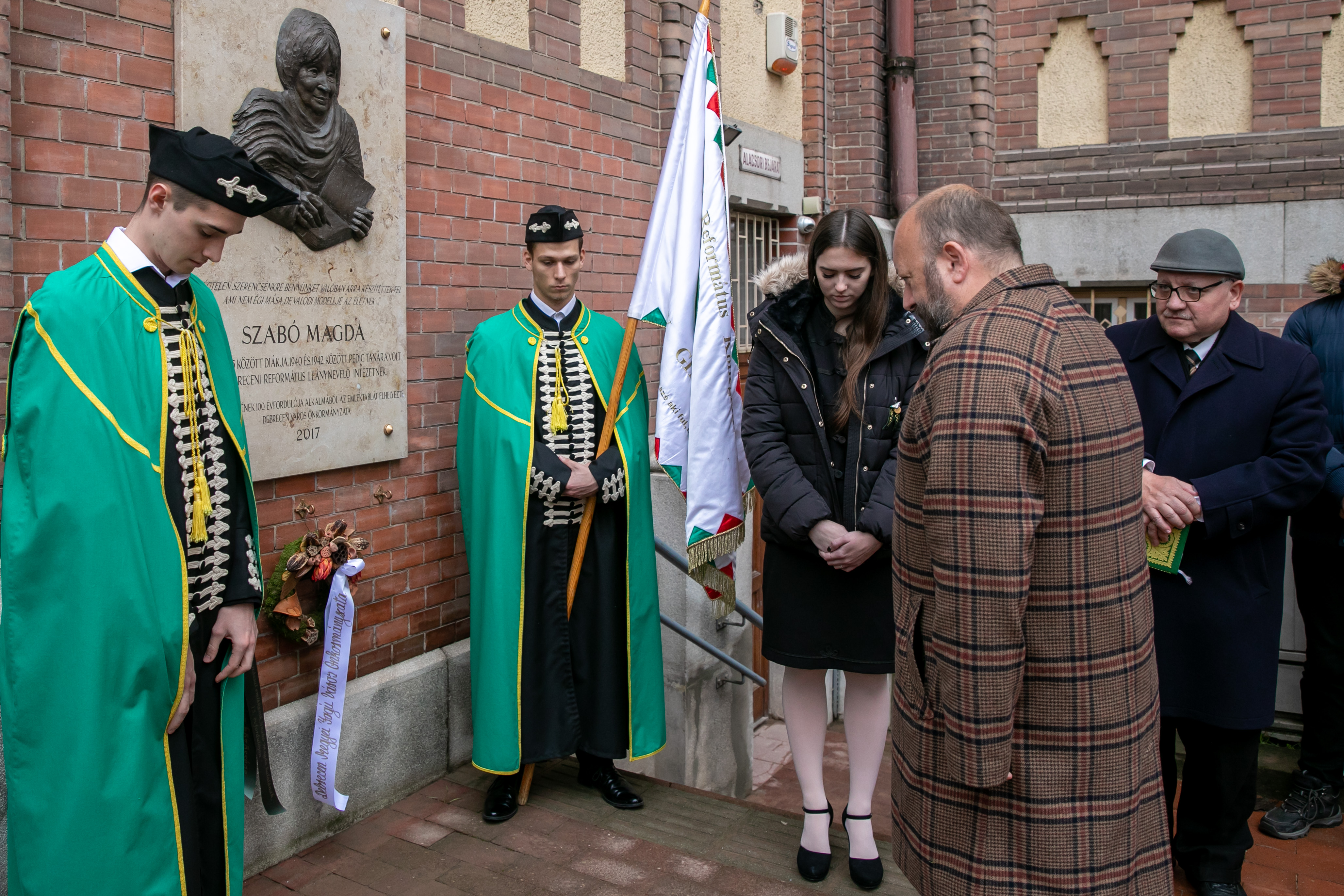 Az emlékezést követően Czapp Katalin, a Debreceni Református Kollégium Dóczy Gimnázium igazgatója, Bertha Zoltán intézményi lelkész, Tankó Istvánné igazgatóhelyettes, majd Perla Erzsébet, a Szabó Magda és Szobotka Tibor Alapítvány kuratóriumi titkára és Puskás István alpolgármester koszorút helyeztek el az író domborművénél.