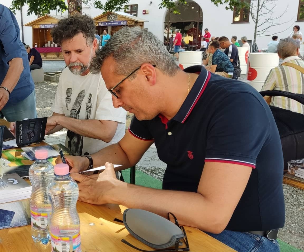 Szénási Miklós és Heller Zsolt Állítsuk meg az időt című könyvüket a Partium Ház meghívására, a 10. Szent László Napok keretében mutatták be, a nagyváradi vár fejedelmi udvarának hűs fái alatt.