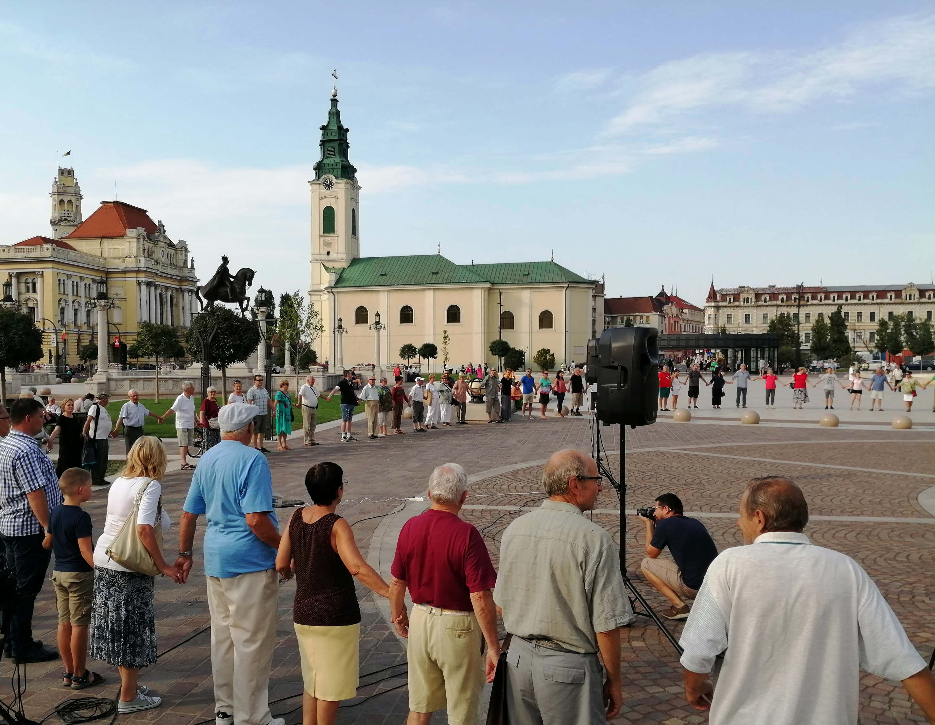 Folytatódik Nagyváradon a Szent László főtéri lovasszobráért indított figyelemfelkeltő megmozdulássorozat, kedd délután ismét élőláncos demonstrációt tartottak a város főterén. A Szent László térre meghirdetett eseményen, a nagy meleg ellenére, mintegy 150 nagyváradi vett részt.