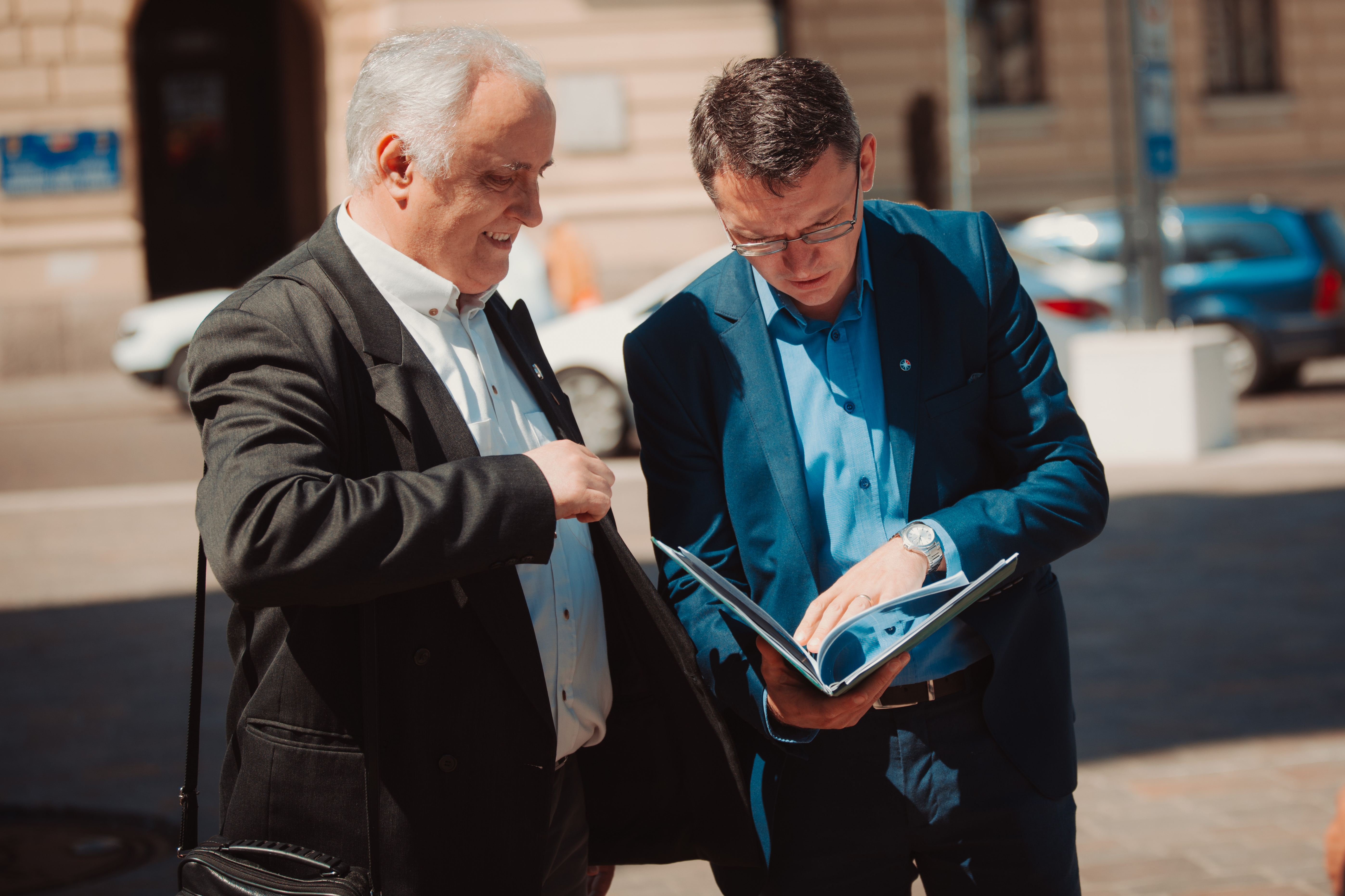 Csomortányi István és Moldován Gellért a petícióval a városháza előtt[/caption]