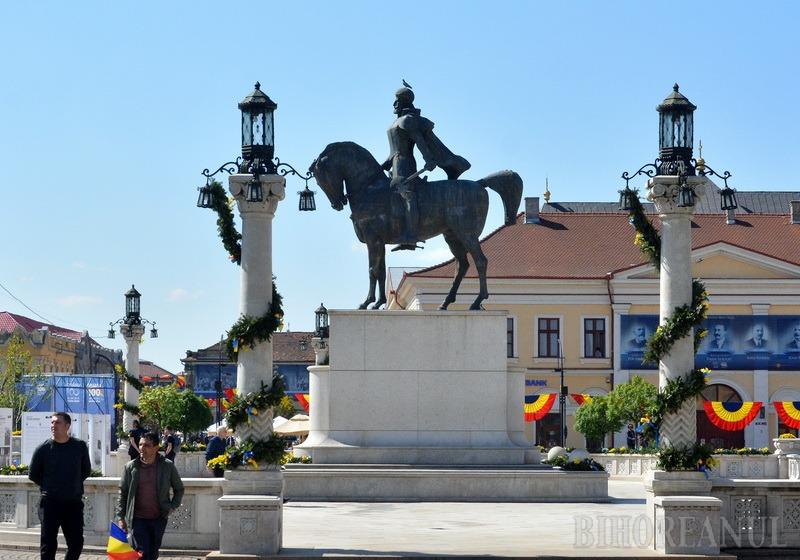 Címlapfotó: Mihai Viteazul lovas szobra a Szent László (ma Unirii) téren az impériumváltás centenáriumi ünnepségén Nagyváradon (bihoreanul.ro)