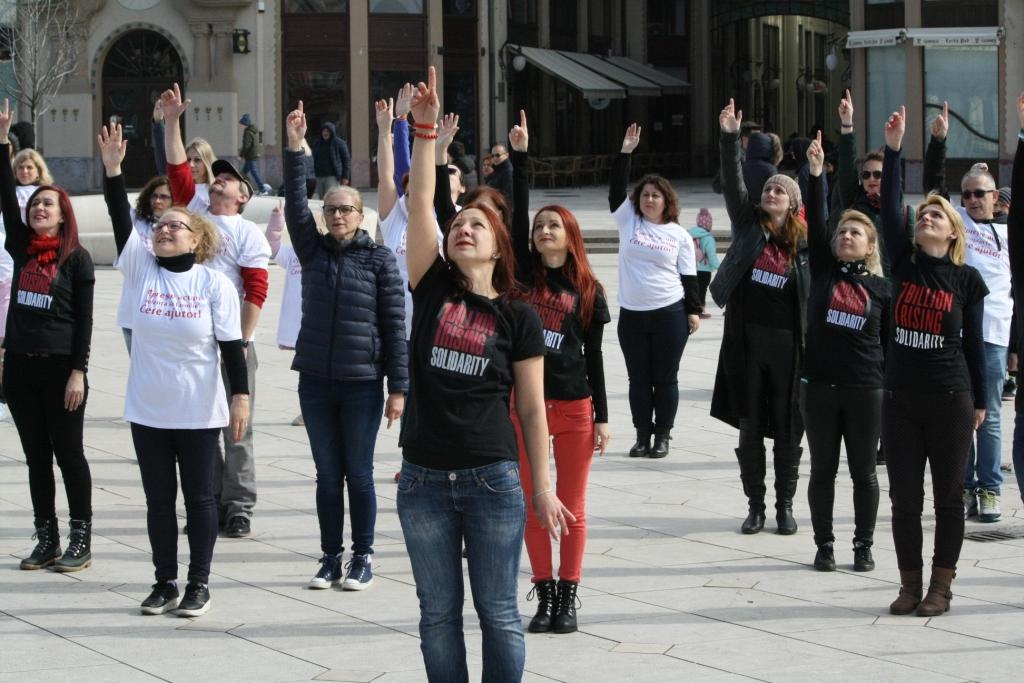 De egy másfajta nőnapi üzenet is várta a főtéren sétálókat: civilek villámcsődületet szerveztek ugyanitt, hogy az One Billion Rising mozgalomhoz csatlakozva hívják fel a figyelmet a nők elleni és családon belüli erőszakra. A One billion rising mozgalom 2012-ben jött létre azért, hogy tudatosítsa a nők elleni erőszak létét. Az eseményen tájékoztatást tartott a Lámpás Alapítvány és a rendőrség, majd 12.30 órakor a résztvevők közösen táncoltak el egy koreográfiát. Az esemény civil kezdeményezésű, Szabó Andrea és Coznici Renáta munkáját a Lámpás Alapítvány segíti.