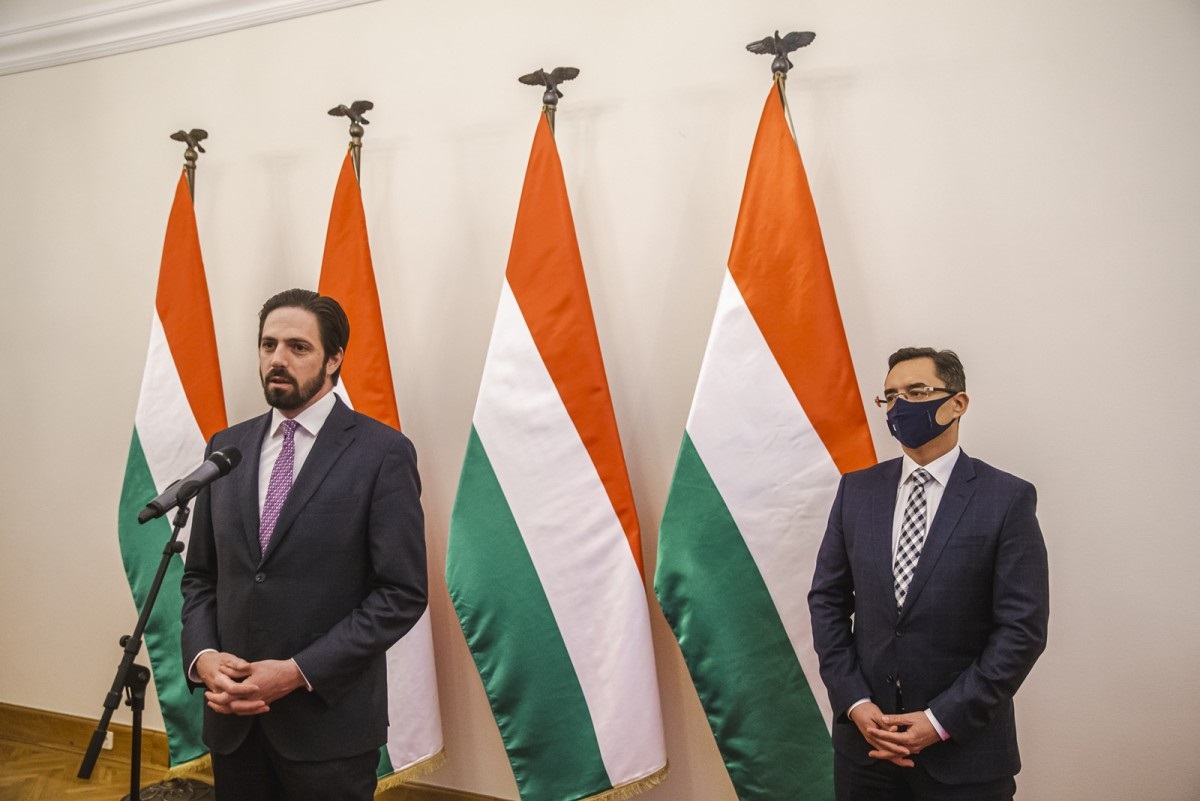 Fotó: A magyar állam a Debreceni Nemzetközi Repülőtér stratégiai fejlesztését és működését támogatva 51 százalékos részesedést szerez a repülőteret üzemeltető gazsasági társaságban. Az erre vonatkozó előterjesztést Debrecen közgyűlése január 27-én tárgyalja ? jelentette be Budapesten Magyar Levente, a Külgazdasági és Külügyminisztérium parlamenti államtitkára, valamint Papp László, Debrecen polgármestere 2022. január 19-én.
