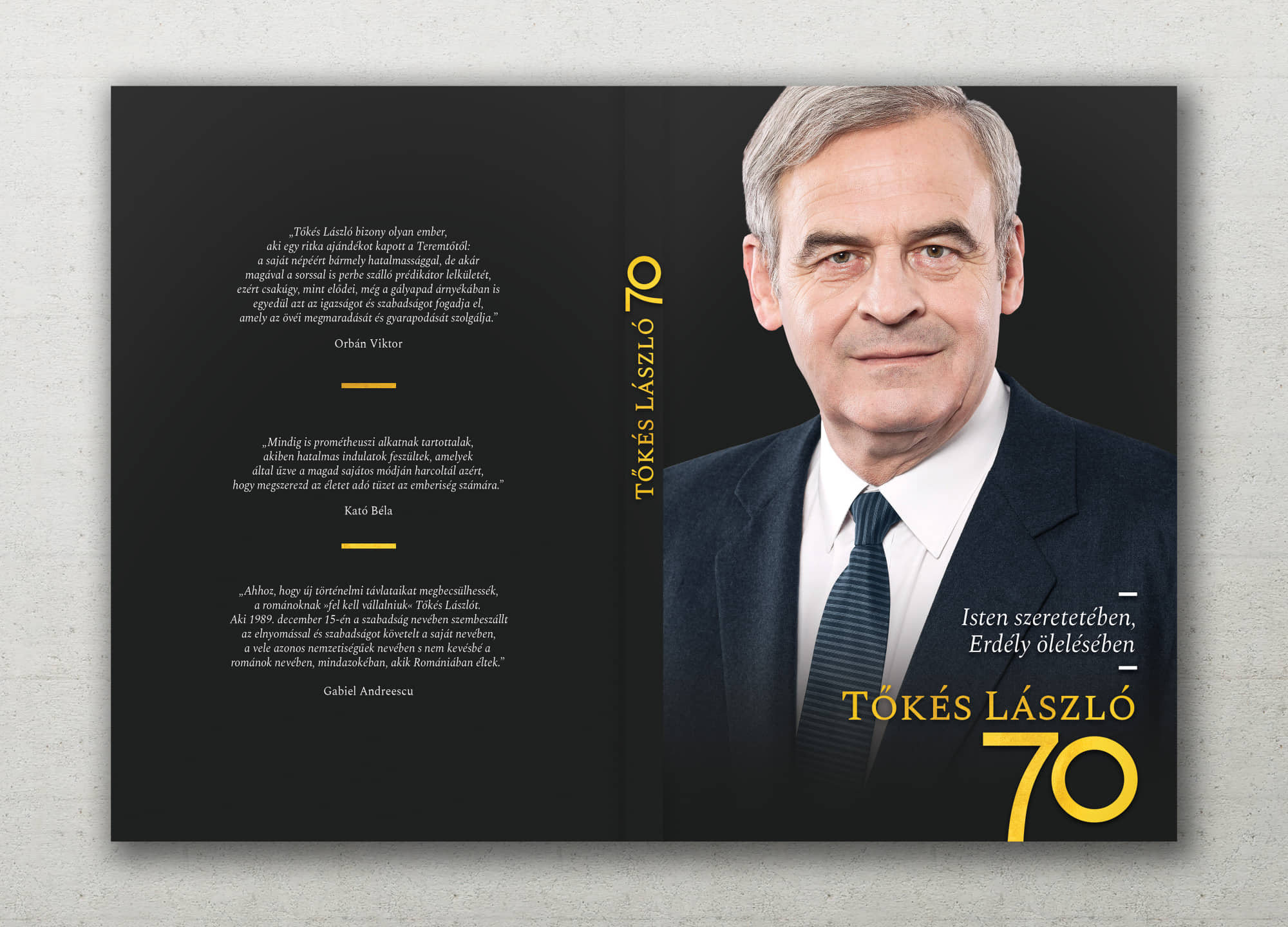 ?Erdély és a Kárpát-medence jelenkorának meghatározó személyisége Tőkés László? ? írja Sándor Krisztina, az EMNT ügyvezető elnöke a Tusványoson bemutatásra került kötet ajánlásában. A 31. Bálványosi Nyári Szabadegyetem és Diáktábor zárónapján zajló politikai fórumon jelentették be, hogy meglepetéskötet jelent meg az idén tavasszal 70. életévét betöltött Tőkés László tiszteletére. A kötet célja, hogy emléket állítson annak a küzdelmes és munkás hét évtizednek, ami eddig eltelt az Erdélyi Magyar Nemzeti Tanács elnökének életéből. Másodsorban olyan ajándék, amely a tiszteletadás jele is.