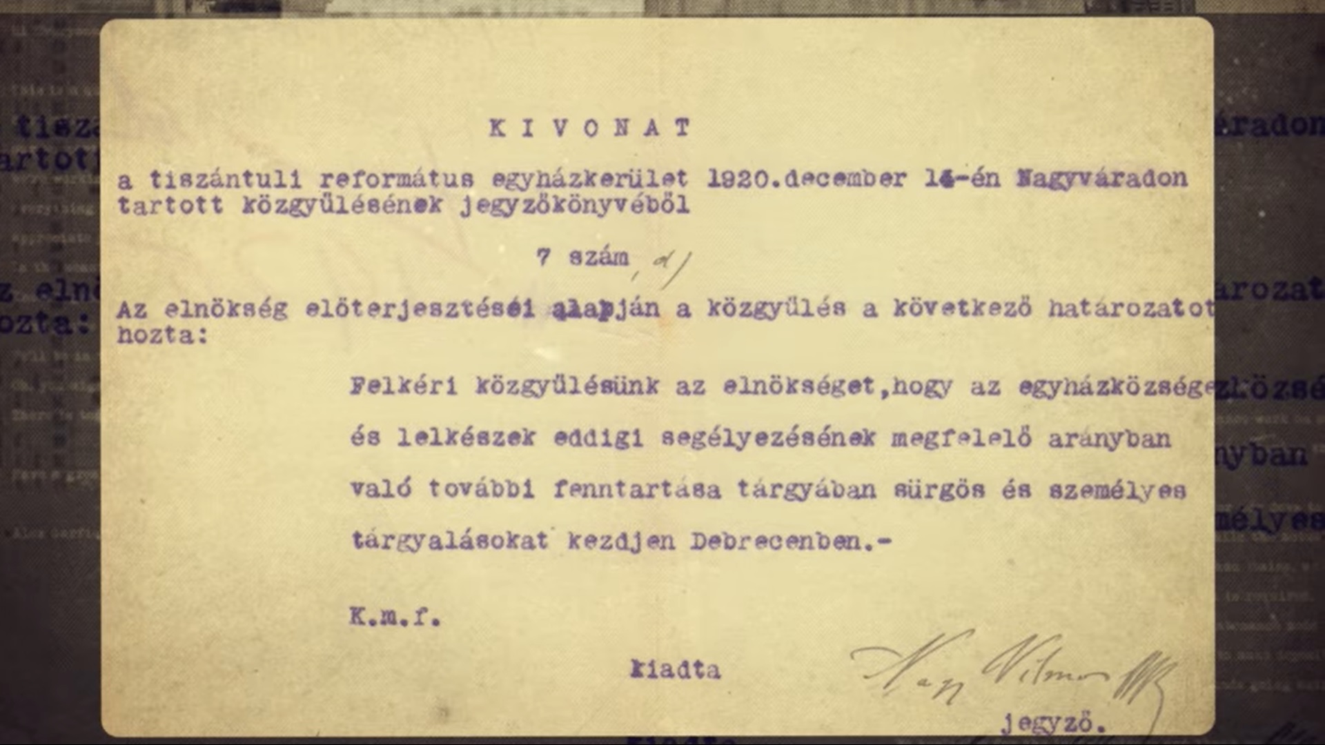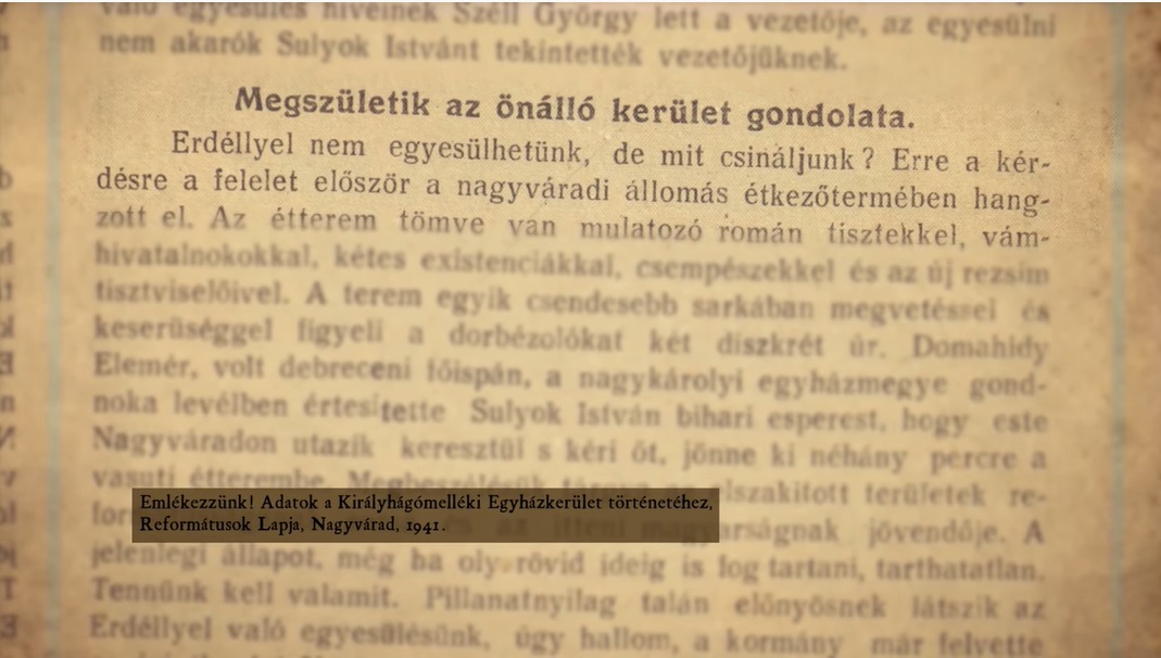 A rendező kitért arra: az Erdélyi Egyházkerület helyzete különbözött a többitől, hiszen teljes egészében, teljes struktúrájában Romániához került. Ugyanakkor Romániához került a debreceni székhelyű Tiszántúli Egyházkerület nyolc csonka egyházmegyéje, amelyekből létrehozták a Királyhágómelléki Egyházkerületet Nagyvárad központtal.