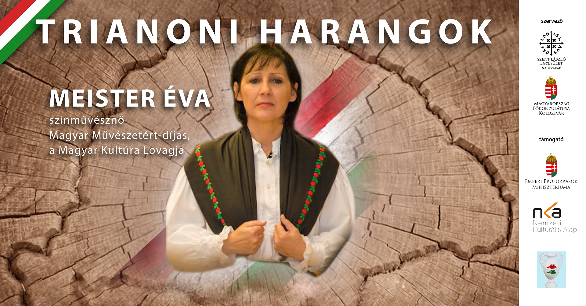 A trianoni diktátum utáni életérzésről, az egyéni és a közösségi tragédiákról, a reményről és hitről szól Meister Éva színművésznő Trianoni harangok című előadása, amelyet Magyarország kolozsvári főkonzulátusa és a Szent László Egyesület szervezésében Nagyváradon is láthat a közönség.