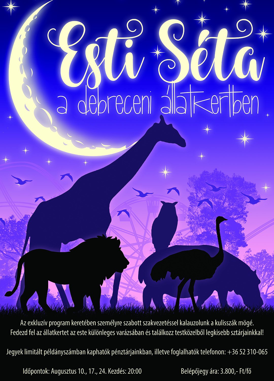 A páratlan élményben augusztus 10-én, 17-én, és 24-én, péntekenként 20:00-tól lehet részük a jelentkezőknek a Debreceni Állatkertben.