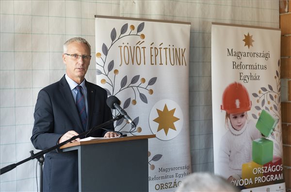 Kép: Soltész Miklós, a Miniszterelnökség egyházi és nemzetiségi kapcsolatokért felelős államtitkára beszédet mond a debreceni Nádsíp utcai református óvoda bokrétaünnepségén 2020. október 28-án. MTI/Balázs Attila