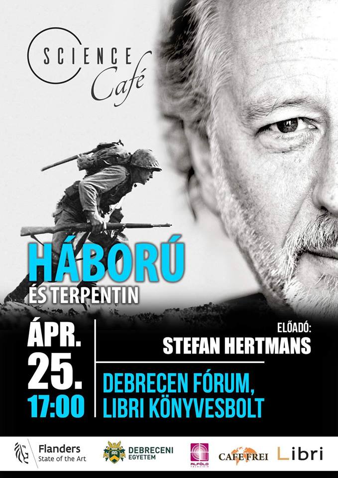 A Science Café keretében Stefan Hertmans mutatja be memoárokból, saját gyerekkori emlékeiből és nagyapja festményeinek belső történeteiből írt költői szépségű regényét. A Háború és terpentin az utóbbi évek egyik legnagyobb belgiumi és hollandiai könyvsikere, több rangos irodalmi díj nyertese, amely mára kortárs klasszikussá vált. Az íróval április 25-én, szerdán 17 órakor kezdődő előadáson találkozhatnak az olvasók a Fórum Bevásárlóközpont Libri Könyvesboltjában.