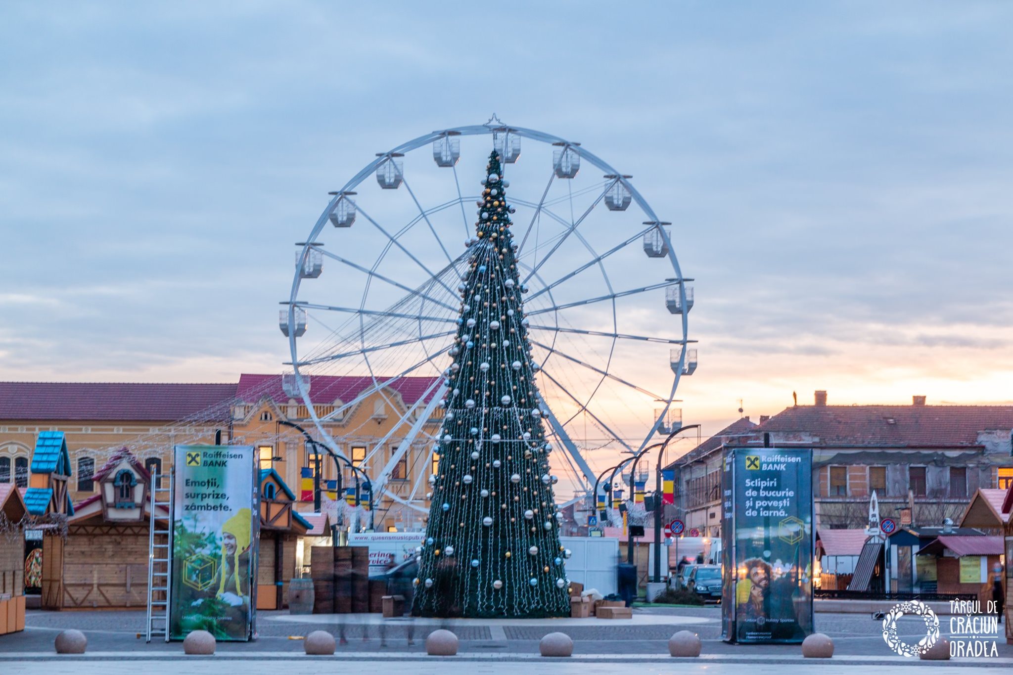 A péntek délután a tér ünnepi fényeinek meggyújtásával megnyíló karácsonyi vásár legnagyobb attrakciója a most első alkalommal felállított óriáskerék, mely a vásár bezárása után is, egészen január 12-ig, az iskolai vakáció végéig várja majd azokat, akik 27 méter magasból is szeretnék megcsodálni Nagyváradot.