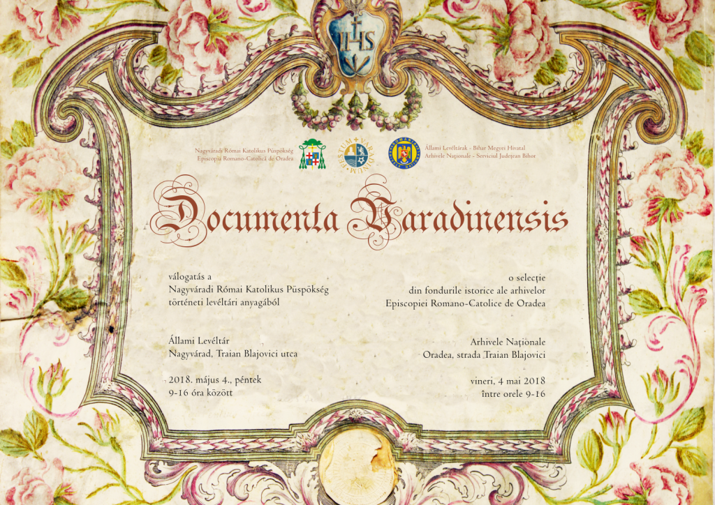 2018. május 4-én, pénteken 9.00 órakor nyílik és 16.00 óráig lesz látogatható a Documenta Varadiensis című kiállítás, amely a Nagyváradi Római Katolikus Püspökség történeti levéltári anyagába nyújt betekintést az Állami Levéltárak Bihar Megyei Kirendeltségének székhelyén (Traian Blajovici utca).