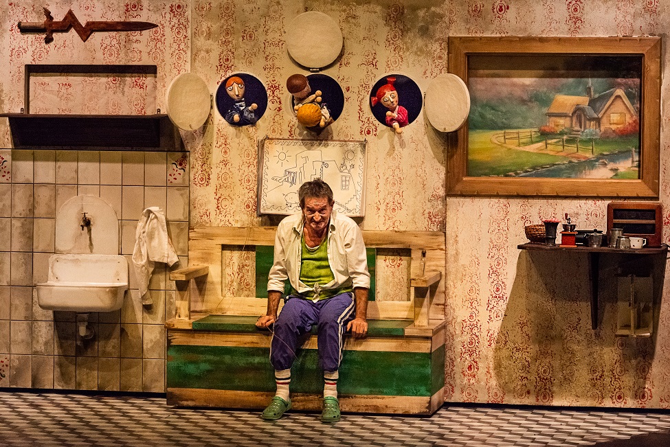 ?Azt szerettem volna, hogy elgondolkodjunk azon, hogy mit jelenthet 2020-ban a népi vagy a népiesség. Ezen a szálon indultunk el Horváth Márkkal, aki az előadás látványtervezője. Beleálmodtuk a történetet saját nagyanyáink világába, a nyári konyhájába. Olyan eszközökben gondolkodtunk, amik szerintünk minden korábbi háztartásban megtalálhatóak voltak. Ilyen például a hengerelt fal, a dísztányér, a karospad, a kerticsap, a régi rádió, valamint a szovjet és kínai tájképfestmények.?