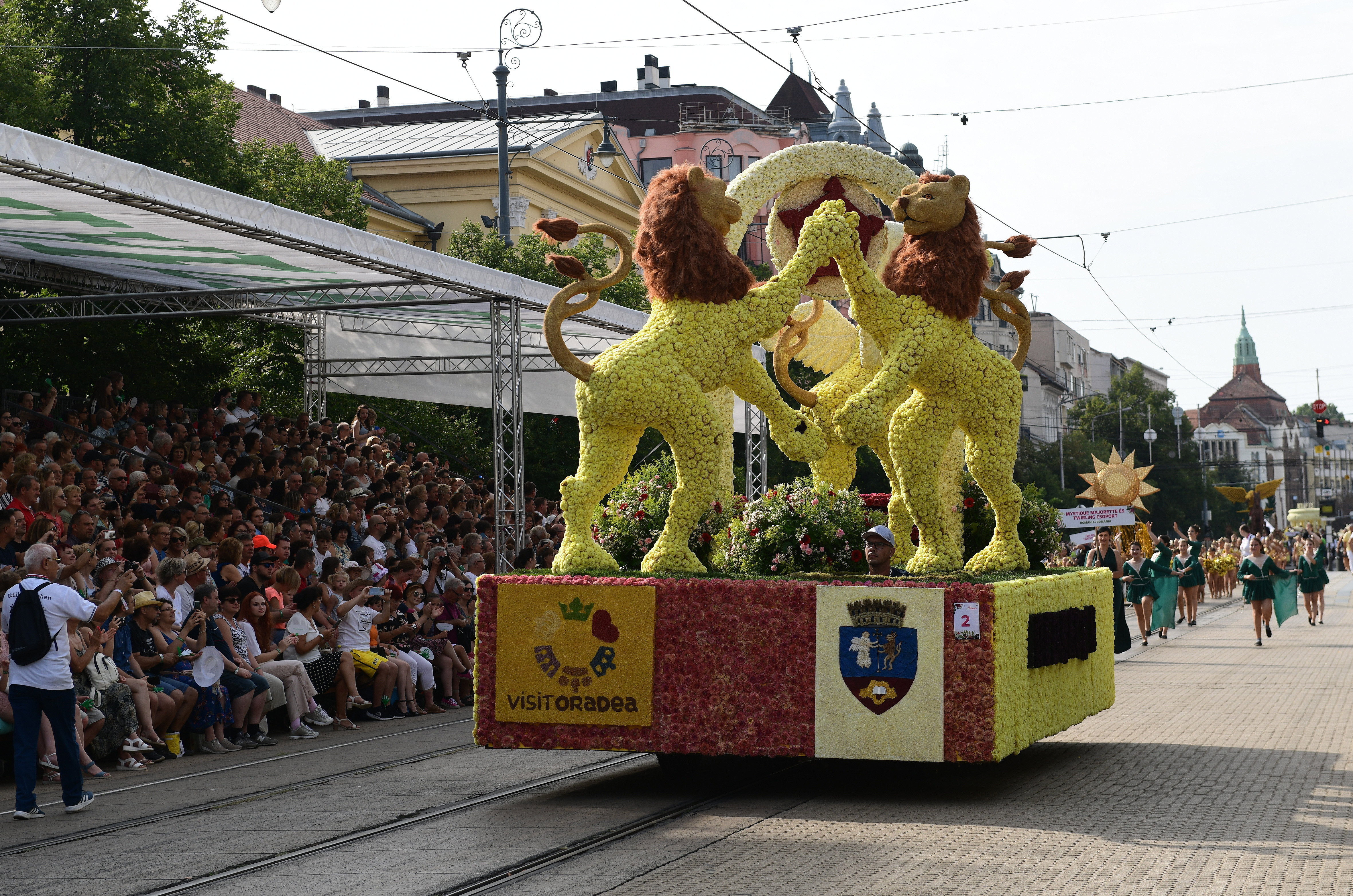 A menetet ezúttal is a magyar államiság jelképeit, a Szent Koronát, az országalmát és a jogart megformáló virágkompozíció nyitotta meg, melyet nagy tapssal fogadott a közönség. Az első virágkocsit rögtön a Debrecen és Nagyvárad testvérvárosi kapcsolatait megjelenítő virágkocsi követte. Nagyváradot az eseményen Zatykó Gyula polgármesteri tanácsadó képviselte. A virágkocsit a Mystique Majorette és Twirling Csoport kísérte. A Nagytemplom előtt a Szigligeti Színház és a Nagyvárad Táncegyüttes tagjai adtak elő különleges produkciót.