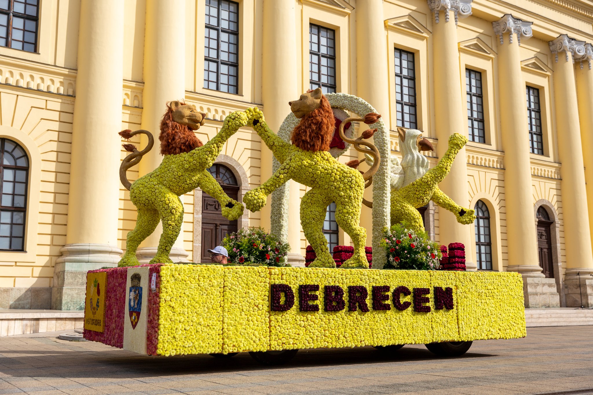 A virágkocsik sorában haladt a debreceni nemzetközi repülőtér és a Wizz Air légitársaság közös kocsija, amely a 10 éves Debrecen-London repülőjáratot köszöntötte, a Magyar Posta Petőfi János vitézét megjelenítő kocsija a tiszta értékekre hívta fel a figyelmet, míg a helyi A.K.S.D. városgazdálkodási cég virágkocsija a környezettudatos gondolkodásra ösztönözte a nézőket.