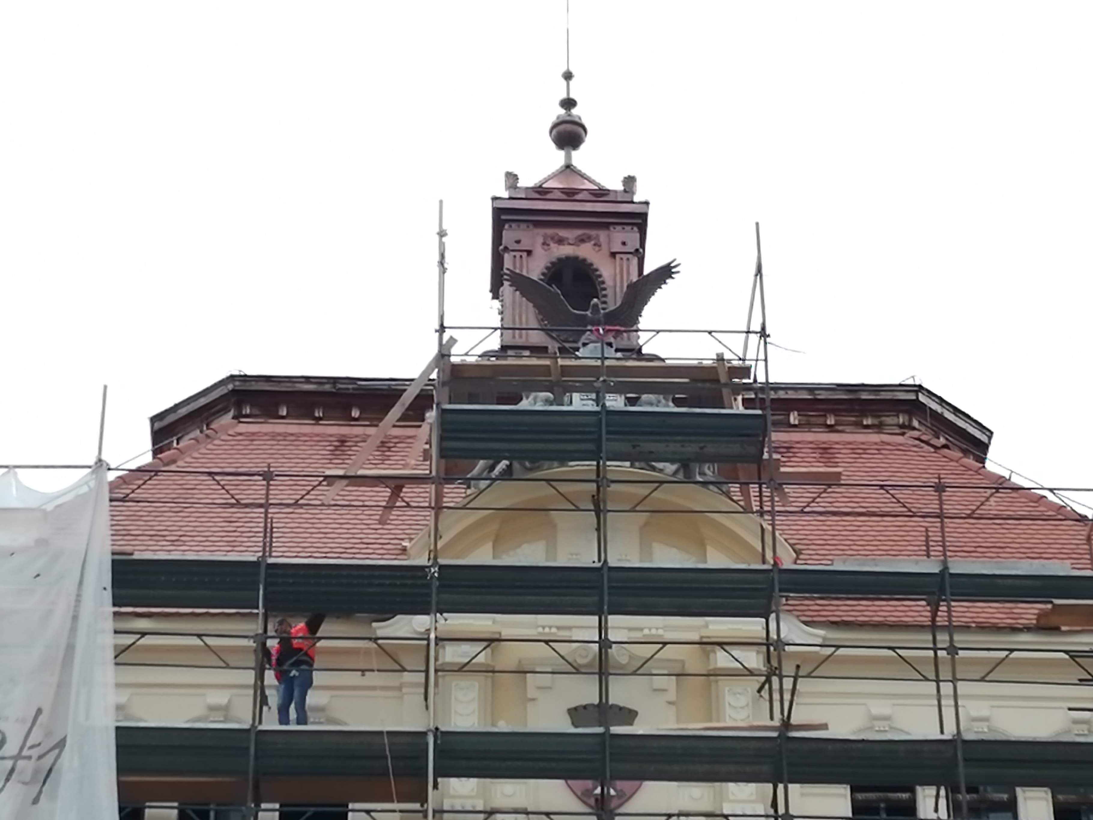 Az eklektikus stílusú épületegyüttesre, melyet egykor ifj. Rimanóczy Kálmán tervezett, már visszaépítették az 1944-ben, a román-szovjet csapatok bevonulásakor találatot kapott kis tornyot is, e hétvégén pedig visszakerült a homlokzatra a turulmadár is. Utóbbi visszaállítását a munkálatok megkezdésekor az Erdélyi Magyar Néppárt kezdeményezte.