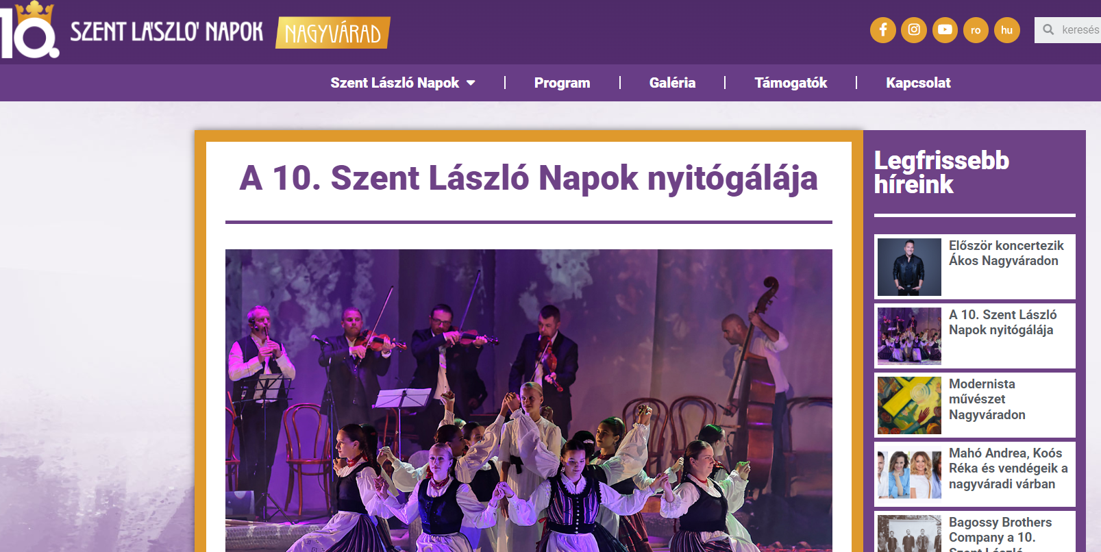Elérhető már az idén június 20?26. között zajló nagyváradi Szent László Napok programja a www.szentlaszlonapok.ro honlapon. Lehet böngészni, és mindenki kiválaszthatja a számára legszimpatikusabb programpontokat.