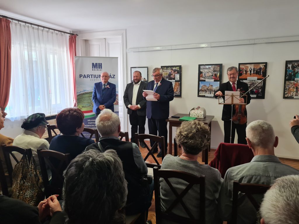 A váradról most Debrecenbe költözött tárlat megnyitóján a jelenlévő díjazottak oklevelet vehettek át. Az ünnepélyes ceremónia záróakkordjaként a kifejezetten erre az alkalomra, egyenesen Nagyváradról érkező, Szacsvay-tortát Vass Kata, a Hajdú-bihari Napló főszerkesztője és Szénási Miklós, a Dehír főszerkesztője közösen szelte fel. A nagyváradi magyar civil szervezetek kezdeményezésére, ott készült tortát természetesen valamennyi jelenlévő megkóstolhatta, akárcsak a frissen sütött erdélyi lepényt és a finom, érmellékről érkezett bakatort is.